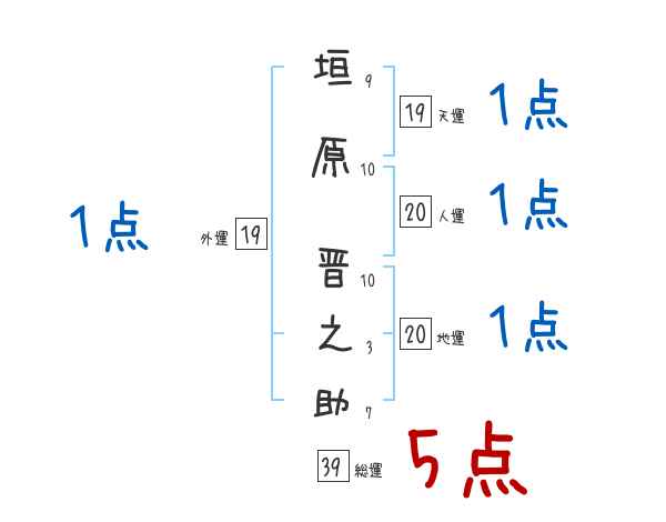 垣原晋之助さんの画数の鑑定結果