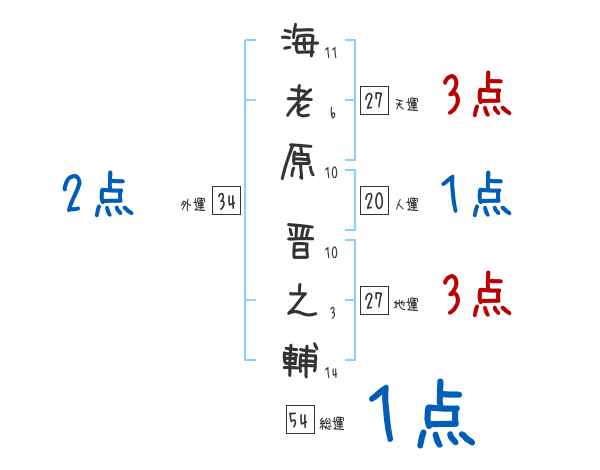 天運![]() | 海老原晋之輔さんの天運は27画の3つ星!頭脳明晰だが強情で摩擦が多い傾向。孤立に注意。 家系が持つ宿命的な運勢を表します。祖先から受け継いだ苗字ですので自分の力が及びません。家柄を象徴します。 |