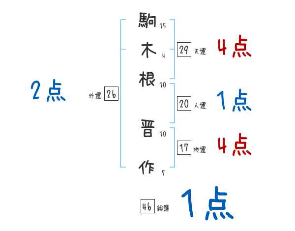 駒木根晋作さんの画数の鑑定結果