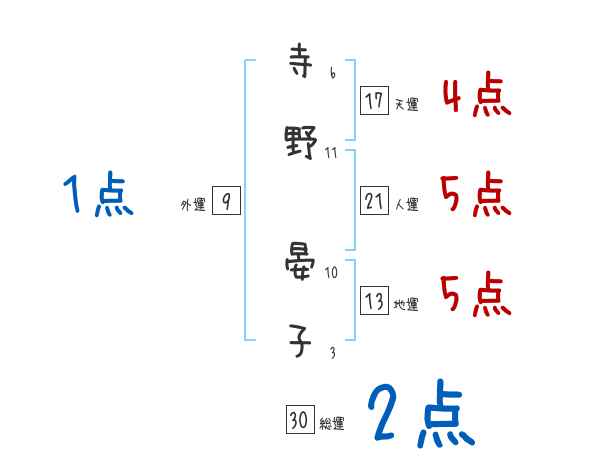 寺野晏子さんの画数の鑑定結果