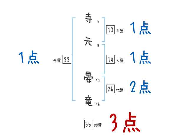 寺元晏竜さんの画数の鑑定結果