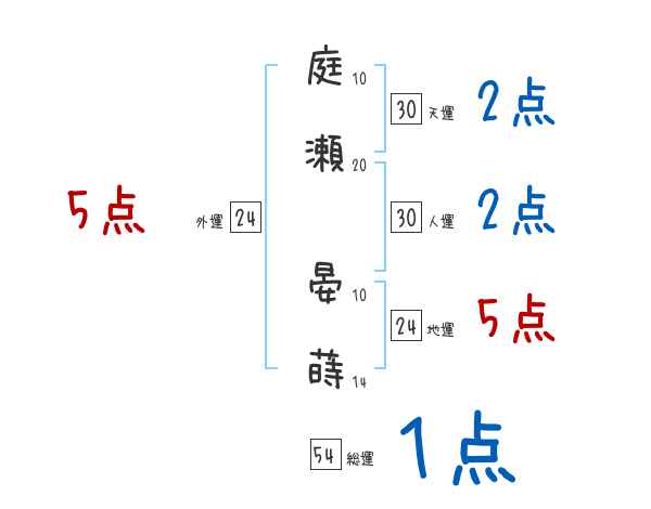 庭瀬晏蒔さんの画数の鑑定結果