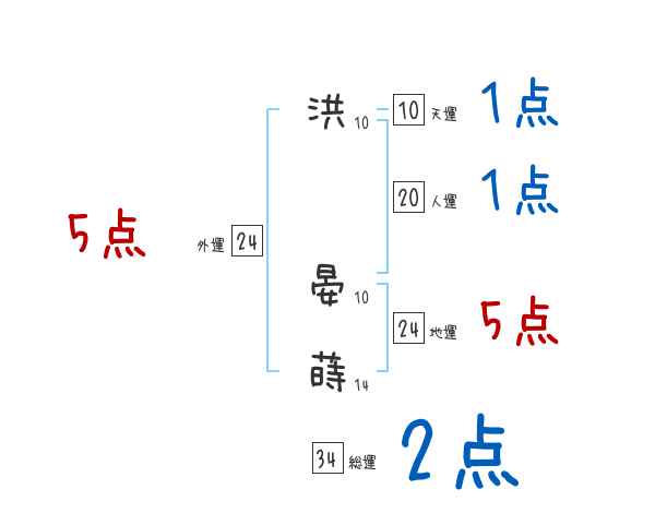 洪晏蒔さんの画数の鑑定結果