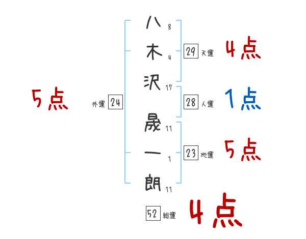 八木沢晟一朗さんの画数の鑑定結果