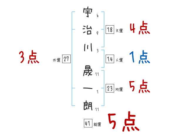 宇治川晟一朗さんの画数の鑑定結果