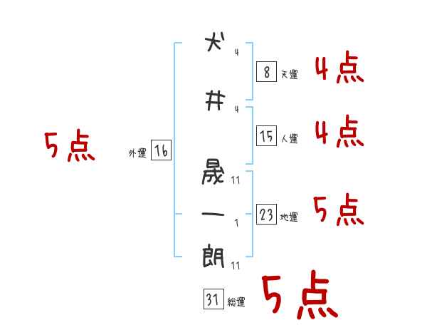 犬井晟一朗さんの画数の鑑定結果