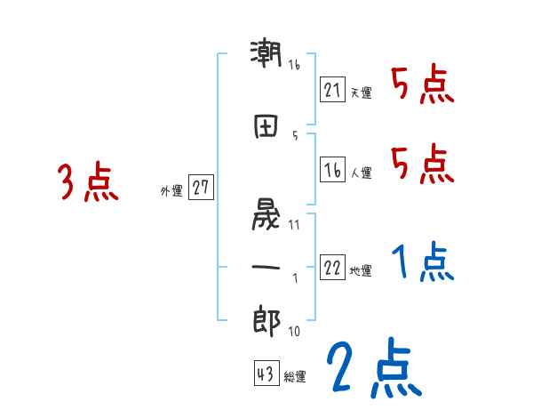 潮田晟一郎さんの画数の鑑定結果