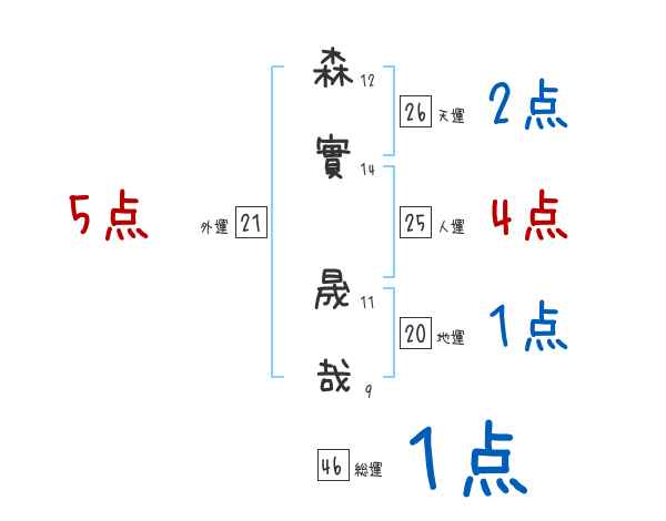 森實晟哉さんの画数の鑑定結果