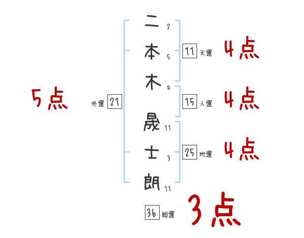二本木晟士朗さんの画数の鑑定結果