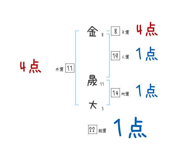 金晟大さんの画数の鑑定結果