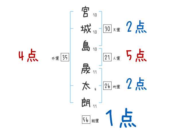 宮城島晟太朗さんの画数の鑑定結果