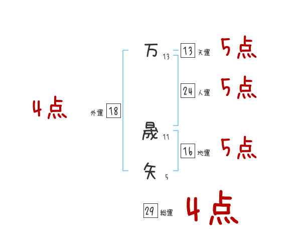 万晟矢さんの画数の鑑定結果