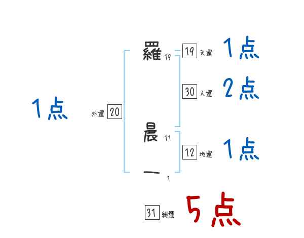 天運![]() | 羅晨一さんの天運は19画の1つ星!優れた才能を持ちますが、協調性が足りないことも。周りの人と協力する事を意識しましょう。 家系が持つ宿命的な運勢を表します。祖先から受け継いだ苗字ですので自分の力が及びません。家柄を象徴します。 |