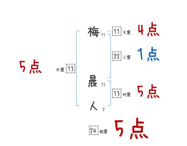 梅晨人さんの画数の鑑定結果
