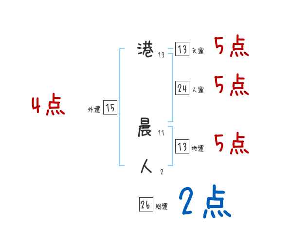 港晨人さんの画数の鑑定結果