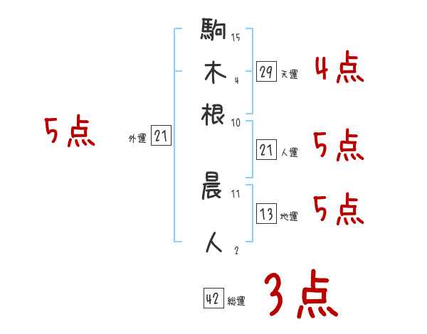 駒木根晨人さんの外運は21画の5つ星