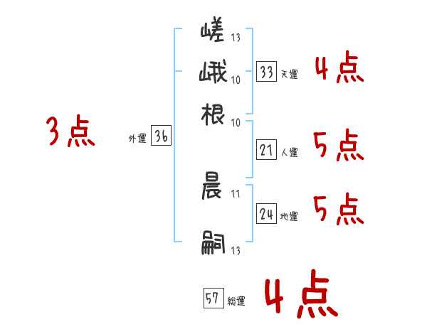 嵯峨根晨嗣さんの画数の鑑定結果