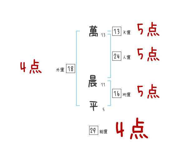 萬晨平さんの画数の鑑定結果