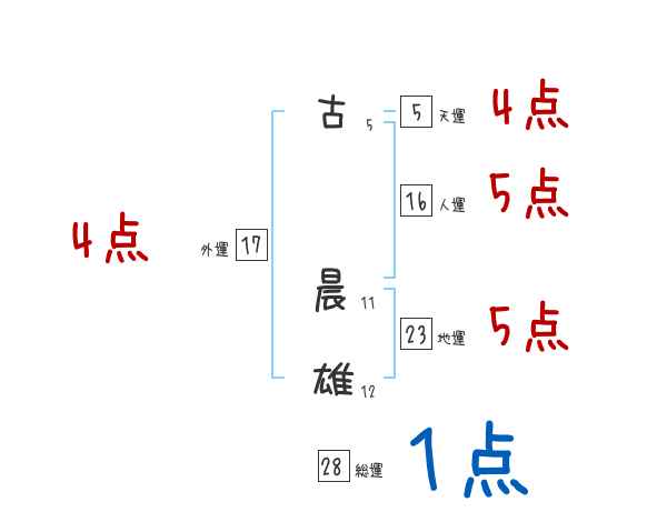 古晨雄さんの画数の鑑定結果
