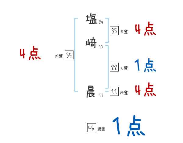 塩﨑晨さんの画数の鑑定結果