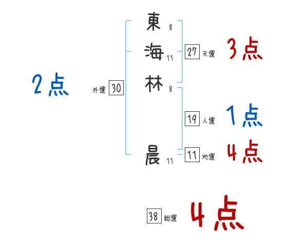 外運![]() | 東海林晨さんの外運は30画の2つ星!浮き沈みの激しさに注意しましょう。 生活面を象徴する運勢です。外部から受ける影響力を表し、結婚運、家庭運や職場、環境への順応性を表します。 |