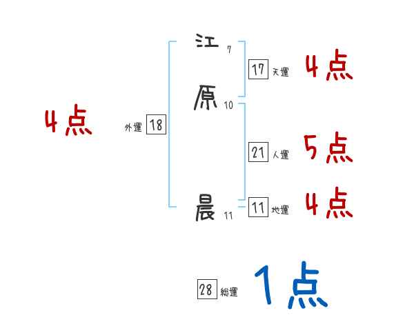 江原晨さんの画数の鑑定結果