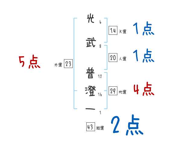 家系が持つ宿命的な運勢を表します。祖先から受け継いだ苗字ですので自分の力が及びません。家柄を象徴します。