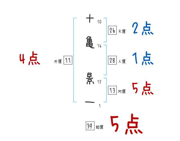 総運![]() | 十亀景一さんの総運は39画の5つ星!社交性に優れ人望が厚い。人の上に立ち成功する。 あなたの人生を表す1番重要な運勢です。生涯を通じて影響する総合運となり、主に50歳以降の晩年期に影響を及ぼします。 |