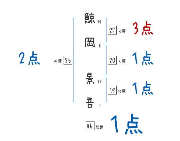 鯨岡景吾さんの画数の鑑定結果