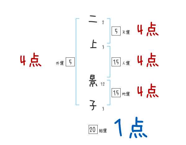 二上景子さんの画数の鑑定結果
