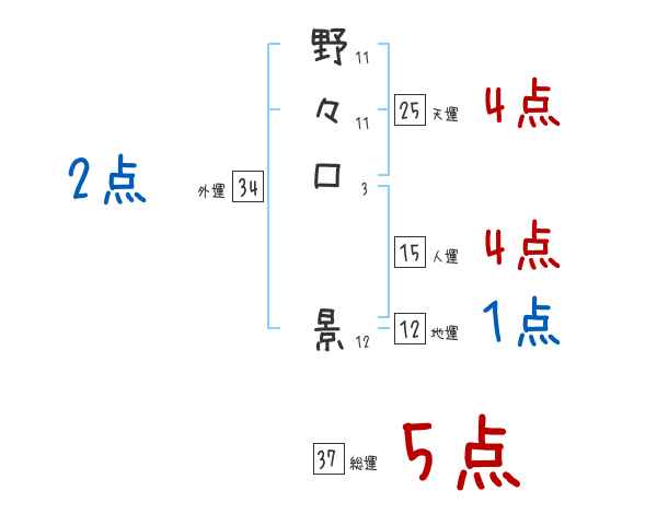 野々口景さんの画数の鑑定結果