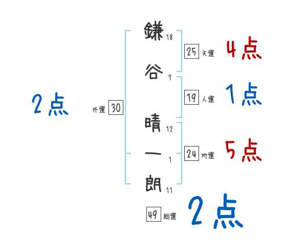 天運![]() | 鎌谷晴一朗さんの天運は25画の4つ星!個性があり才能があふれる。強運の持ち主で発展する。 家系が持つ宿命的な運勢を表します。祖先から受け継いだ苗字ですので自分の力が及びません。家柄を象徴します。 |