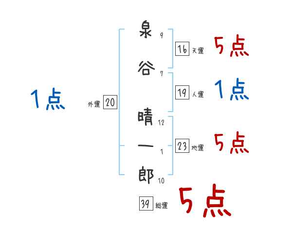 天運![]() | 泉谷晴一郎さんの天運は16画の5つ星!人望が厚く大きく発展する。逆転成功が見える。 家系が持つ宿命的な運勢を表します。祖先から受け継いだ苗字ですので自分の力が及びません。家柄を象徴します。 |