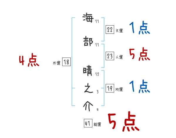 外運![]() | 海部晴之介さんの外運は18画の4つ星!情熱的で剛気。忍耐力があり信頼される。 生活面を象徴する運勢です。外部から受ける影響力を表し、結婚運、家庭運や職場、環境への順応性を表します。 |