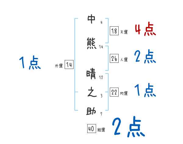 中熊晴之助さんの画数の鑑定結果