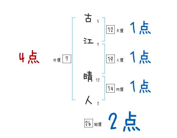 古江晴人さんの画数の鑑定結果