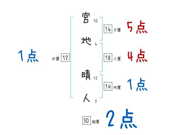 総運![]() | 宮地晴人さんの総運は30画の2つ星!浮き沈みの激しさに注意しましょう。 あなたの人生を表す1番重要な運勢です。生涯を通じて影響する総合運となり、主に50歳以降の晩年期に影響を及ぼします。 |