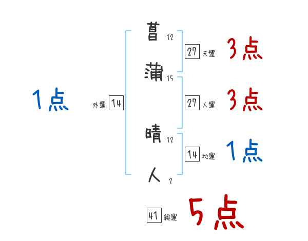 菖蒲晴人さんの画数の鑑定結果