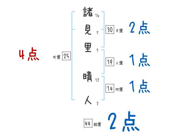 諸見里晴人さんの画数の鑑定結果