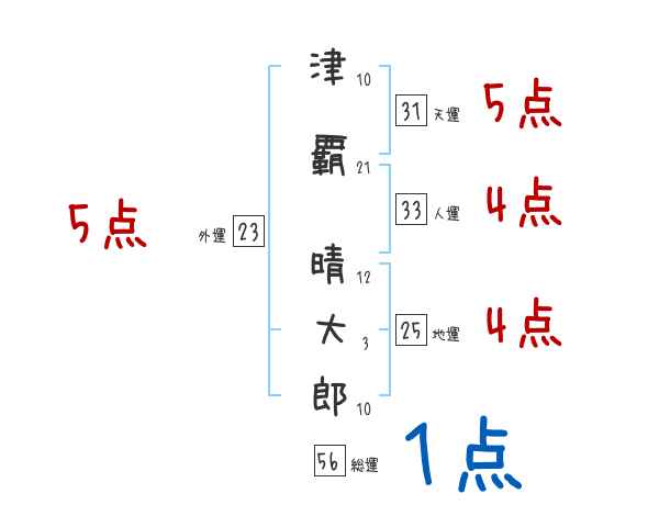 天運![]() | 津覇晴大郎さんの天運は31画の5つ星!社交性があり判断力に優れる。順風満帆な人生で円満な生活。 家系が持つ宿命的な運勢を表します。祖先から受け継いだ苗字ですので自分の力が及びません。家柄を象徴します。 |