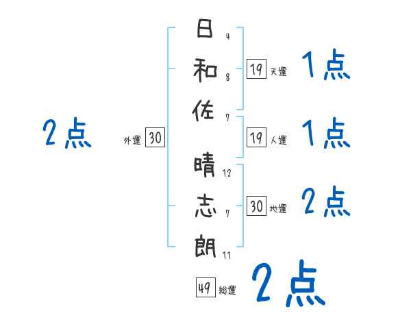 地運![]() | 日和佐晴志朗さんの地運は30画の2つ星!浮き沈みの激しさに注意しましょう。 個性を表す基礎的な運勢です。性格形成や対人関係、行動力など家庭環境に影響されます。主に誕生してから20歳くらいまでの若年期の運勢を表します。 |