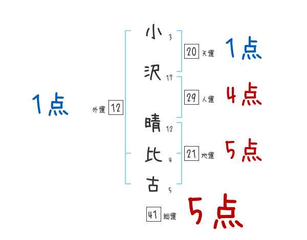 小沢晴比古さんの画数の鑑定結果