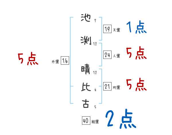 外運![]() | 池渕晴比古さんの外運は16画の5つ星!人望が厚く大きく発展する。逆転成功が見える。 生活面を象徴する運勢です。外部から受ける影響力を表し、結婚運、家庭運や職場、環境への順応性を表します。 |
