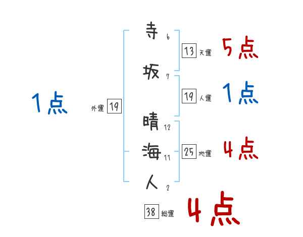 寺坂晴海人さんの画数の鑑定結果