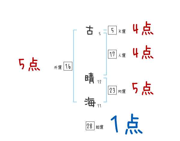 古晴海さんの画数の鑑定結果