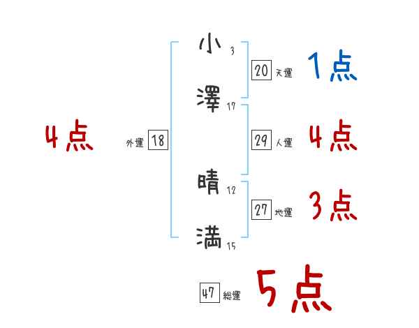 外運![]() | 小澤晴満さんの外運は18画の4つ星!情熱的で剛気。忍耐力があり信頼される。 生活面を象徴する運勢です。外部から受ける影響力を表し、結婚運、家庭運や職場、環境への順応性を表します。 |