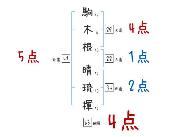 駒木根晴琉揮さんの画数の鑑定結果