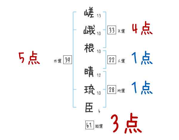 嵯峨根晴琉臣さんの画数の鑑定結果