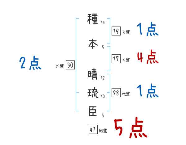 外運![]() | 種本晴琉臣さんの外運は30画の2つ星!浮き沈みの激しさに注意しましょう。 生活面を象徴する運勢です。外部から受ける影響力を表し、結婚運、家庭運や職場、環境への順応性を表します。 |