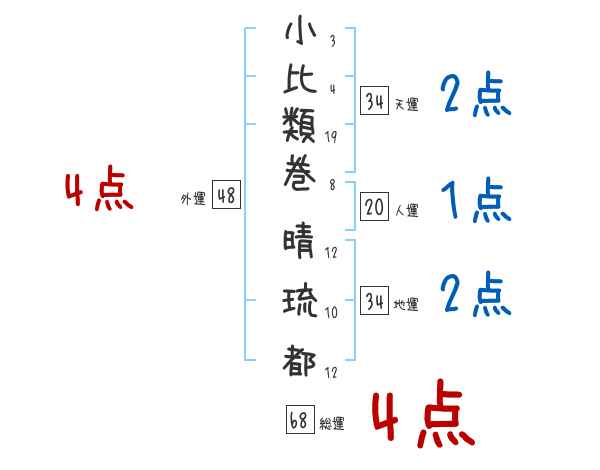 地運![]() | 小比類巻晴琉都さんの地運は34画の2つ星!独創性に優れるが、自尊心が強く災難に注意しましょう。 個性を表す基礎的な運勢です。性格形成や対人関係、行動力など家庭環境に影響されます。主に誕生してから20歳くらいまでの若年期の運勢を表します。 |